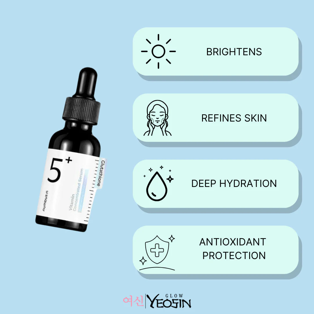 The numbuzin No.5 Vitamin Concentrated Serum brightens skin and evens out tone with Vitamin C and Niacinamide. It targets dark spots and hyperpigmentation, refines texture, and provides deep hydration. This serum also offers antioxidant protection, shielding skin from environmental stressors, and boosts radiance for a vibrant, healthy complexion. Suitable for all skin types.