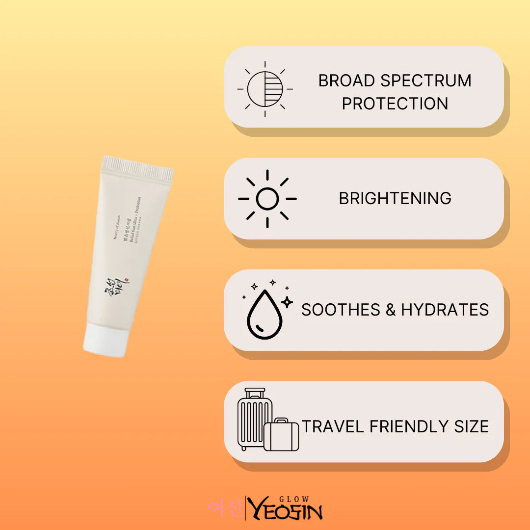 This mini chemical sunscreen provides SPF50+ protection against UVA and UVB rays. Enriched with Grain Probiotics and Rice Extract, it strengthens the skin's barrier and shields it from damage. Its fast-absorbing formula leaves no white cast and is suitable for all skin types. Perfect for on-the-go protection!